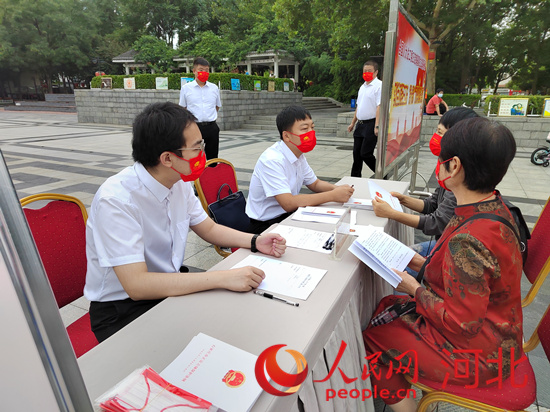正定县各级部门在子龙广场宣传《石家庄市正定古城保护条例》。人民网祝龙超 摄
