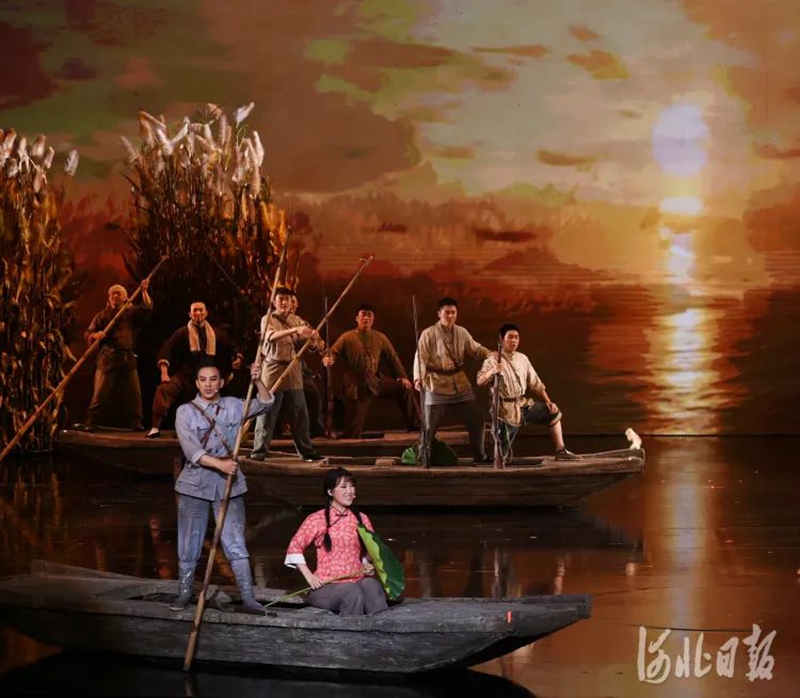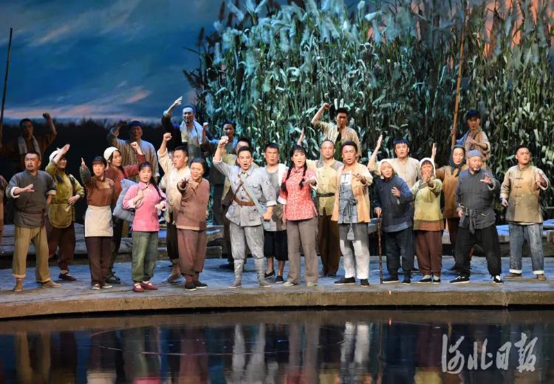 8月23日晚,由河北省艺术中心出品的民族歌剧《雁翎队》,在河北省艺术中心激情上演。波光闪动的白洋淀、激烈紧张的战斗、荡气回肠的歌曲……近两个小时的演出,艺术地再现了雁翎队的传奇故事,再现了燕赵儿女在淀泊中的英勇斗争,赢得现场观众热烈的掌声。