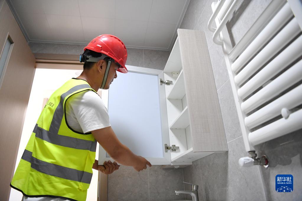 8月25日,工作人员在容西片区溪秀苑小区一套安置房内巡检。