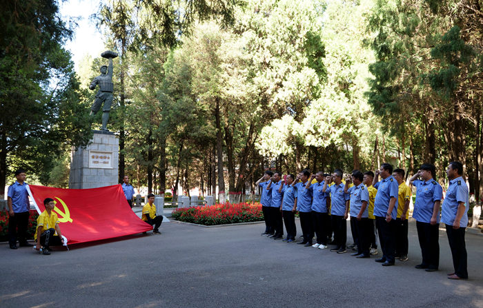 近日,隆化站区干部职工在董存瑞烈士陵园重温入党誓词。北京铁路局供图