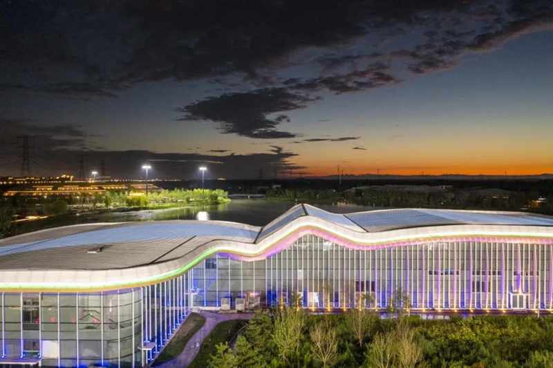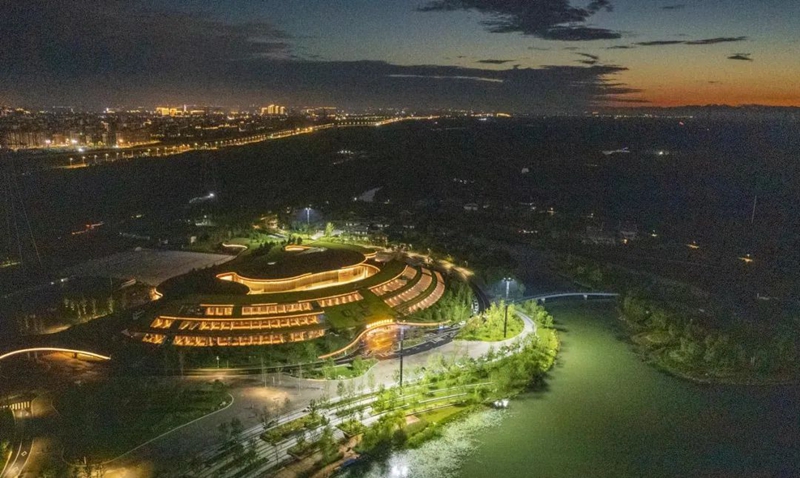 雄安郊野公园秦皇岛园在暮色下,灯光璀璨。河北日报记者李东宇 摄