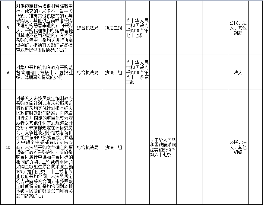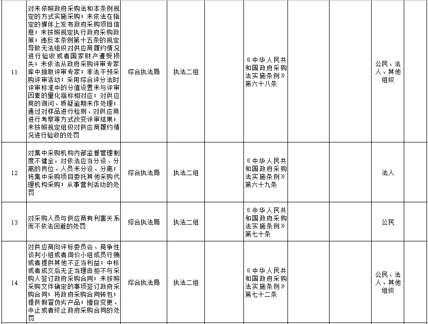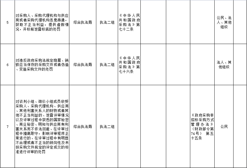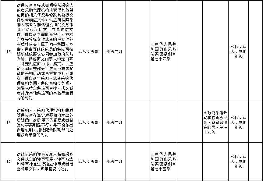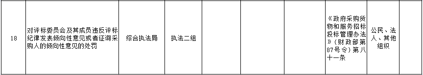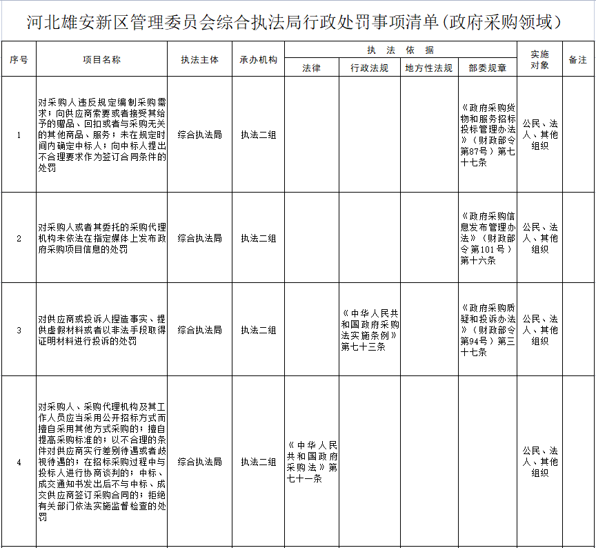 河北雄安新区管理委员会综合执法局行政处罚事项清单(政府采购领域)