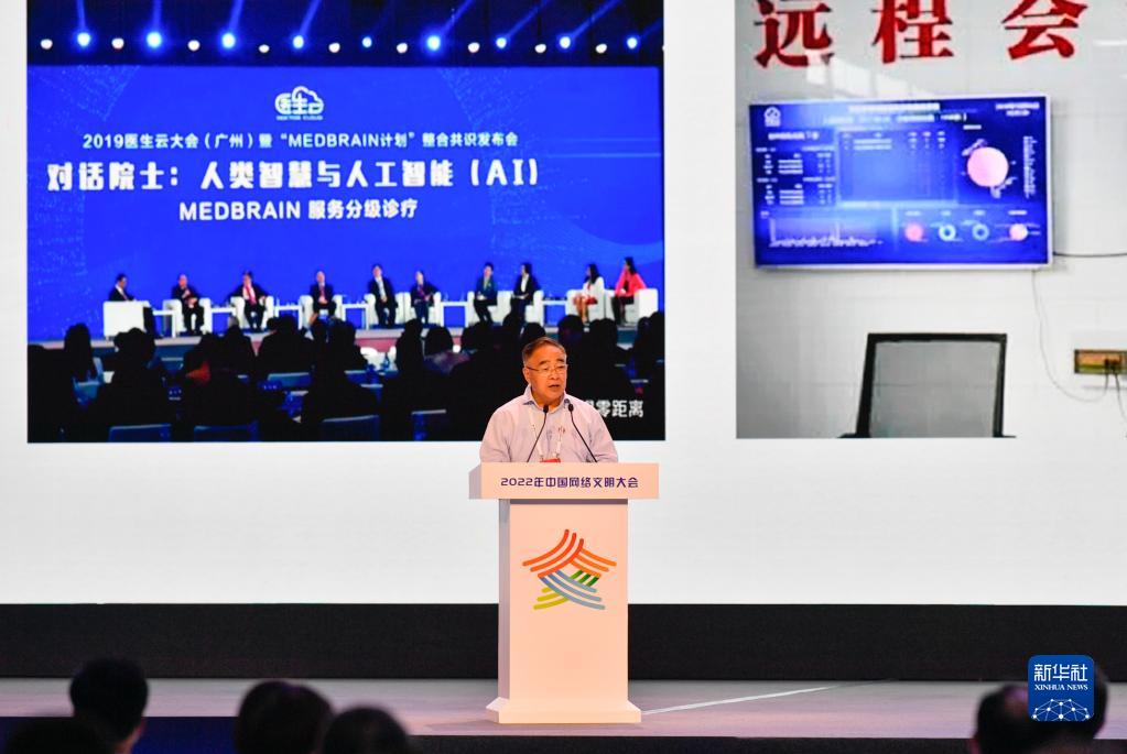 8月28日,在国家会展中心(天津),中国工程院院士张伯礼在2022年中国网络文明大会主论坛上发言。新华社记者孙凡越 摄