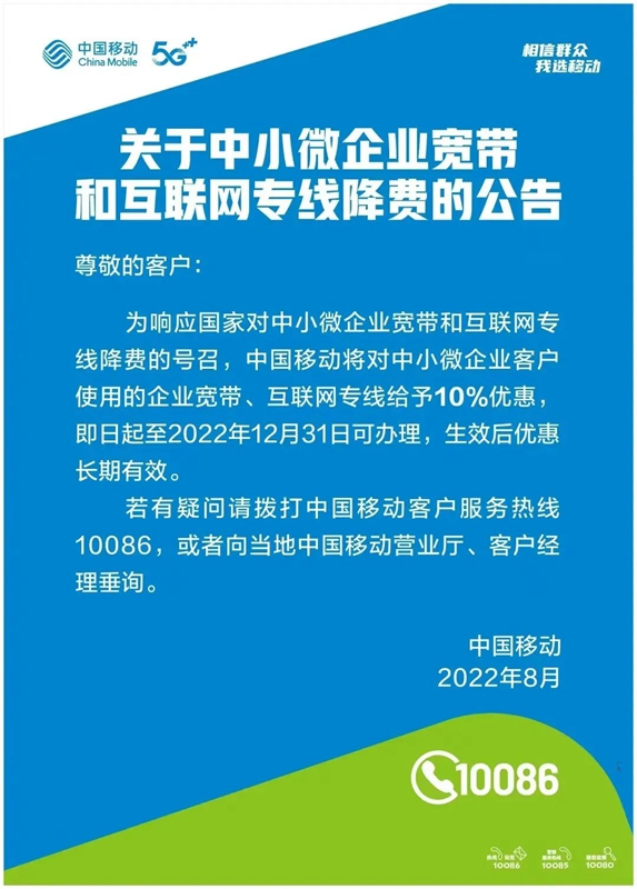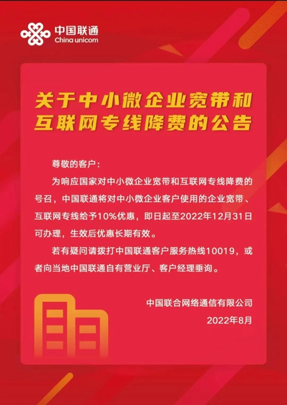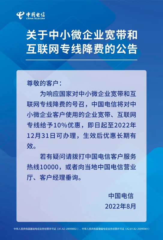 为深入贯彻落实省委、省政府《关于保产业链供应链稳定的九条政策措施》,切实减轻中小微企业负担,降低生产经营成本,雄安新区改革发展局积极主动作为,组织域内基础电信企业充分发挥责任担当,采取有力措施实施降费,实现2022年中小微企业宽带和专线平均资费再降10%,将纾困惠企政策落到实处。即日起至2022年12月31日,新区中小微企业可到附近基础电信企业营业厅现场或者拨打各基础电信企业客户服务热线进行办理。