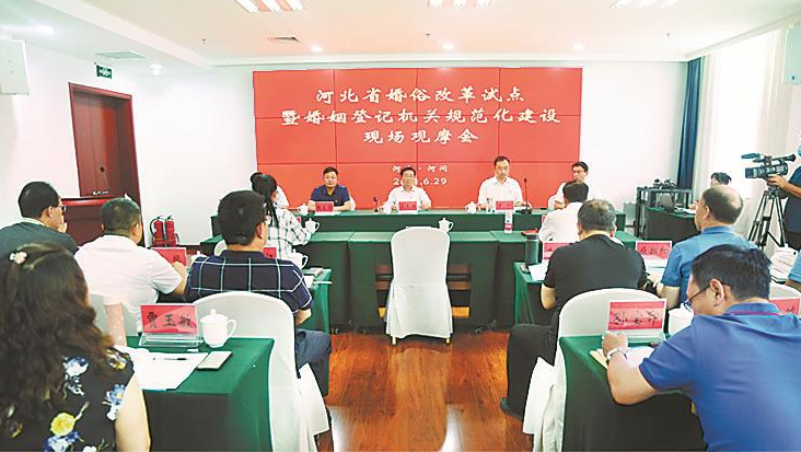 全省婚俗改革试点暨婚姻登记机关规范化建设现场观摩会在河间市召开。(资料片)