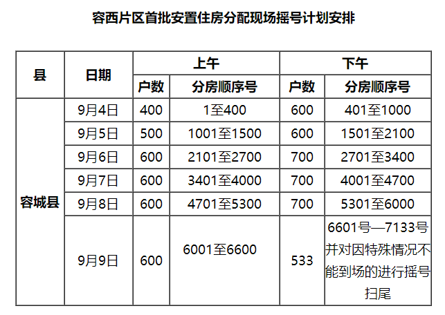 附件:容西片区首批安置住房分配现场摇号计划安排