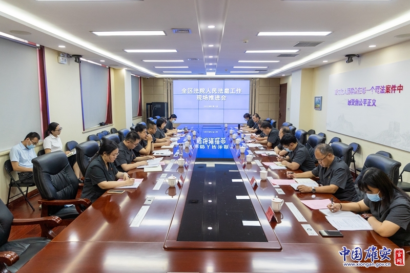 雄安中院与三县法院相关负责同志,人民法庭负责人及法官参加会议。
