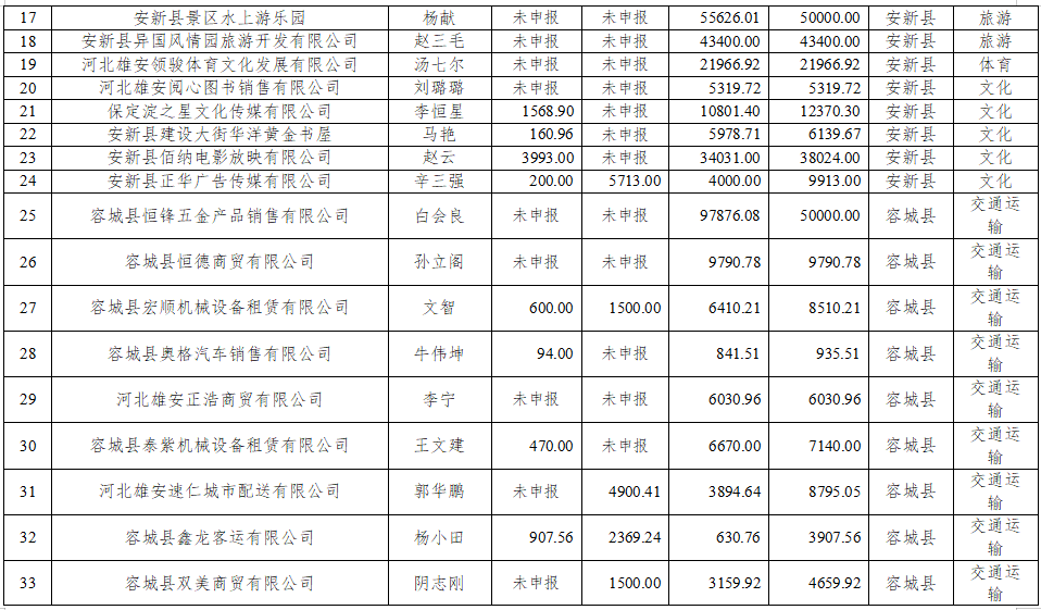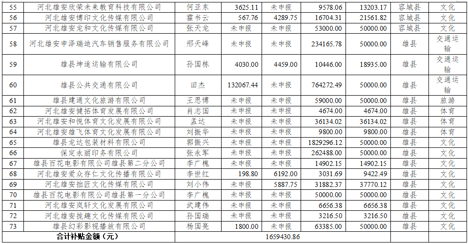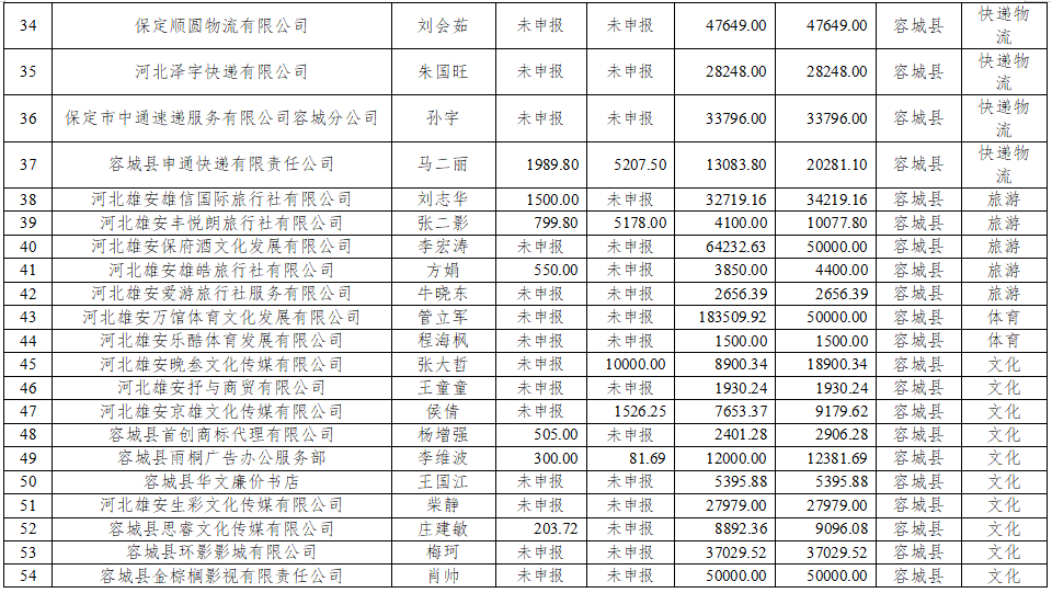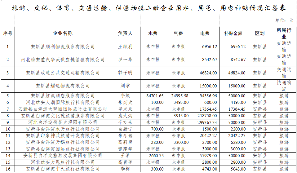 旅游、文化、体育、交通运输、快递物流小微企业用水、用气、用电补贴情况汇总表