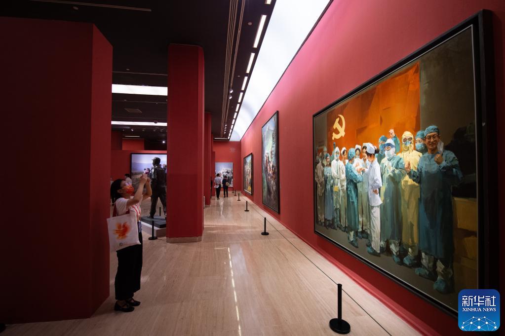 9月2日,观众在观看展览中的作品《新生——浙里抗疫》。