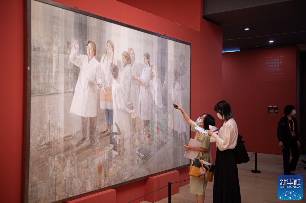 9月2日,观众在中国美术馆观看全国优秀美术作品展览。