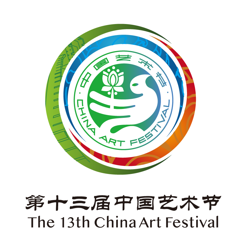 第十三届中国艺术节标志以中国艺术节节徽为基础设计而成。中国艺术节节徽呈圆形,由“中国艺术节”中、英文字样组成,节徽图案象征手捧花束的人,又象征展翅欲飞的鸟,寓意中国艺术向新的高度腾飞。