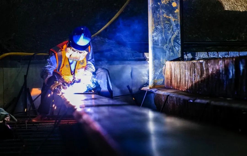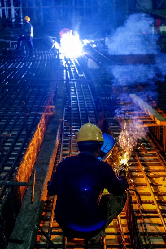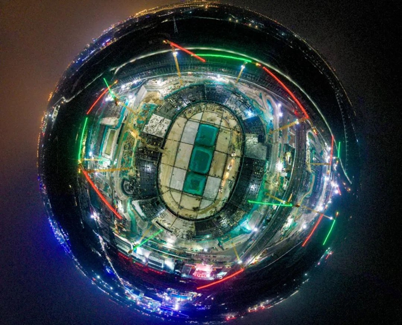 2022年9月4日晚,雄安新区启动区的雄安体育中心项目建设现场,工人们有条不紊地进行着工作。河北日报记者李东宇 摄