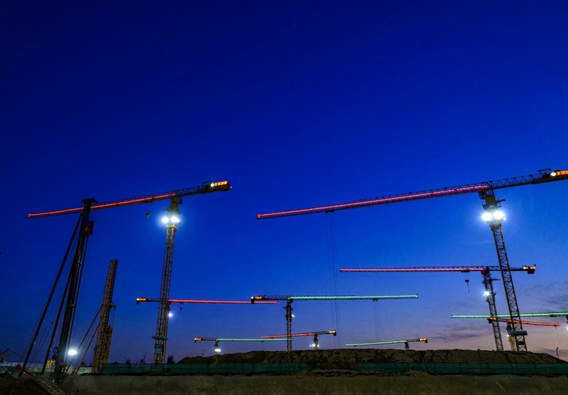 2022年9月4日,夜幕降临,启动区塔吊林立,灯光璀璨。河北日报记者李东宇 摄