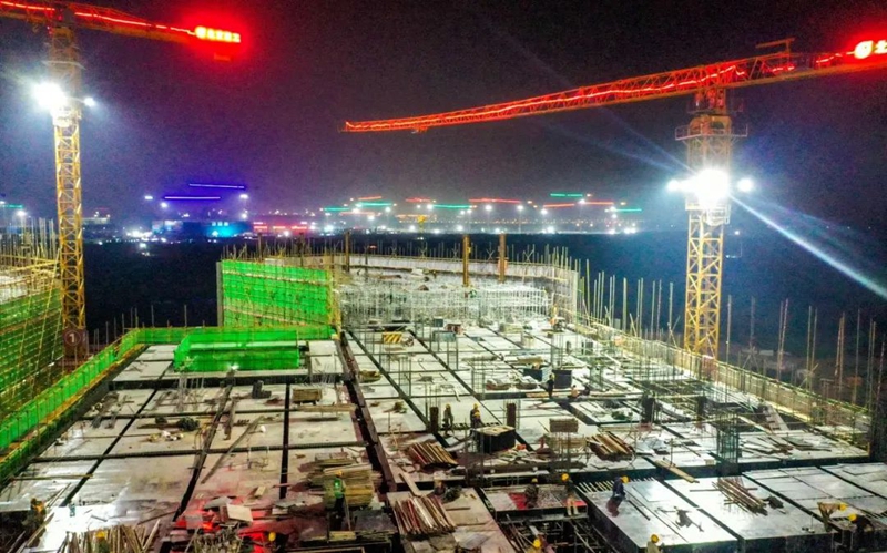 2022年9月4日晚,雄安宣武医院项目建设如火如荼。河北日报记者李东宇 摄