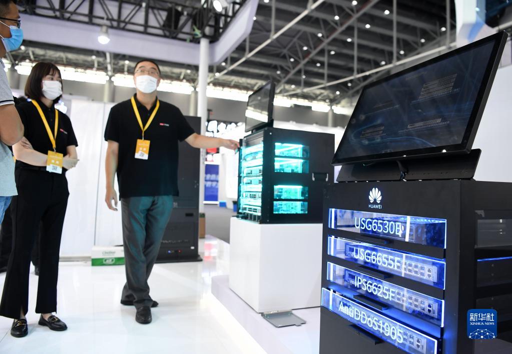 9月4日,一家参展企业代表在介绍防火墙产品。