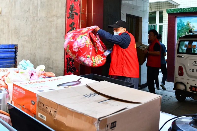 搬家当天,早上6点钟,梁神堂工作营的工作队员就早早来到了搬家现场,帮助群众共同搬家。大家不怕脏、不怕累,打包的打包、搬东西的搬东西,有的用肩扛、有的几个人一起抬,在工作队员的共同努力下,将所有家具物品都完好无损地搬到了回迁群众尹锁群位于雄东安置区的新家。