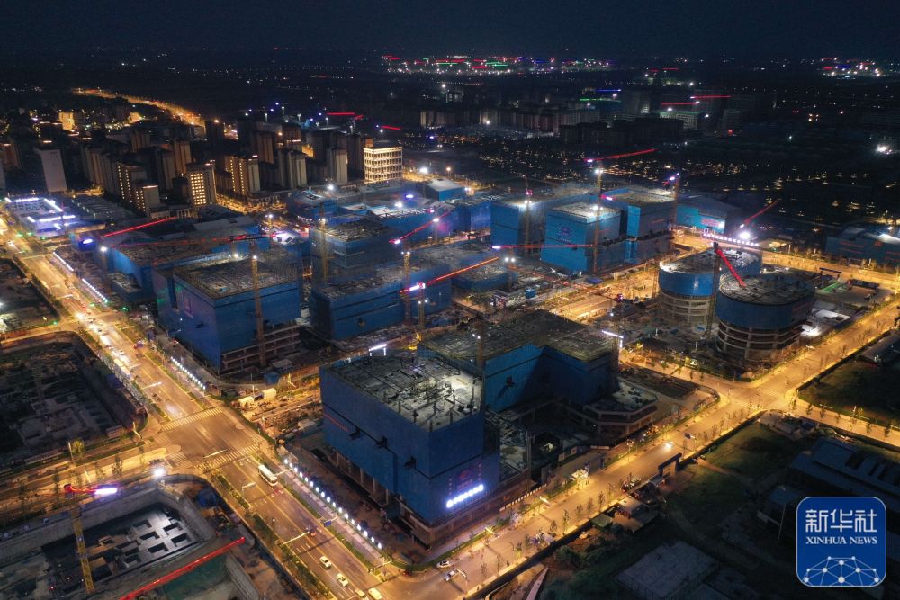 雄安新区容东片区雄安·电建智汇城建设项目夜景(2022年8月17日摄,无人机照片)。新华社记者朱旭东 摄
