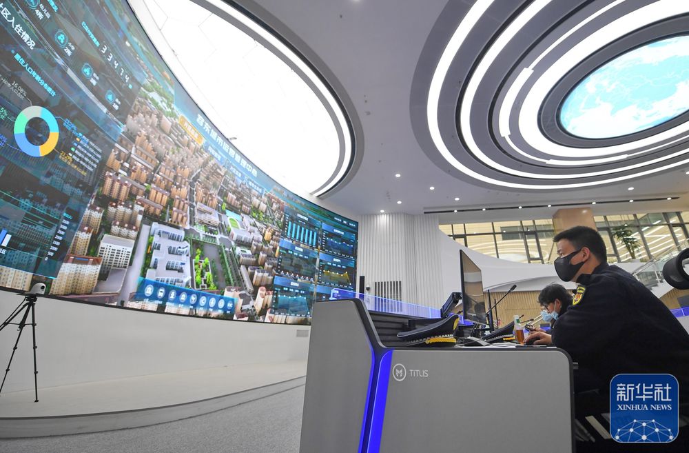 工作人员在雄安新区容东城市运营管理中心监管平台工作(2022年3月29日摄)。新华社记者朱旭东 摄