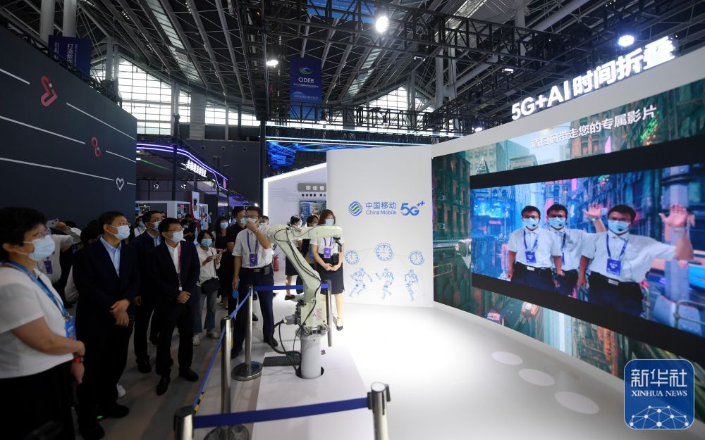 参观者在河北省石家庄市举办的2021中国国际数字经济博览会上参观(2021年9月6日摄)。新华社记者王晓 摄