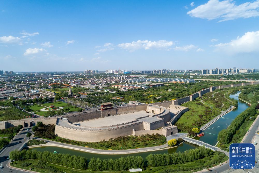 蓝天白云掩映下的河北省正定古城(2021年6月4日摄,无人机照片)。新华社记者朱旭东 摄