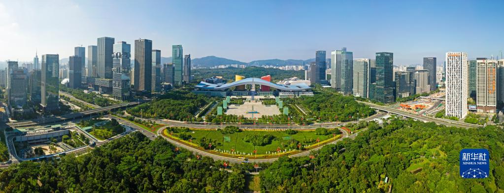 这是深圳市民中心和莲花山公园一线(2020年10月2日摄,无人机照片)。新华社记者梁旭 摄