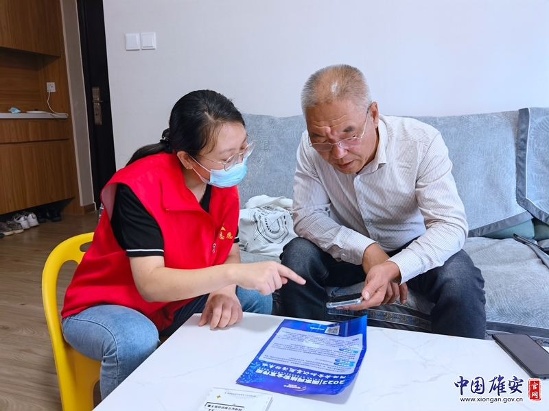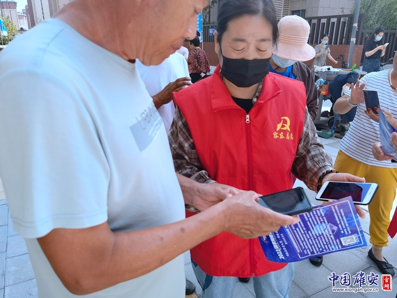在容东片区南张堡社区,工作人员向过往群众宣传网络安全知识。中国雄安官网李元闯 摄