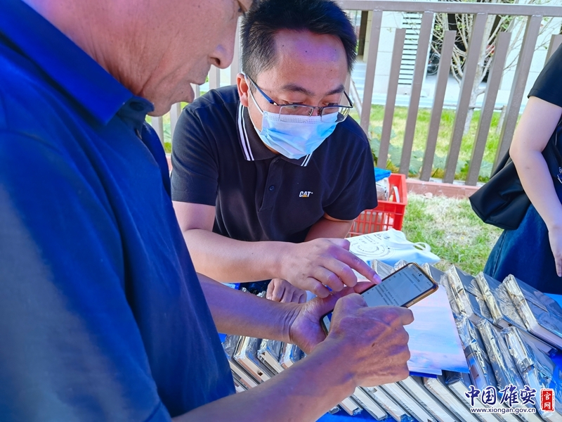 工作人员向群众宣传网络安全知识,指导进行网络安全知识答题。中国雄安官网李元闯 摄