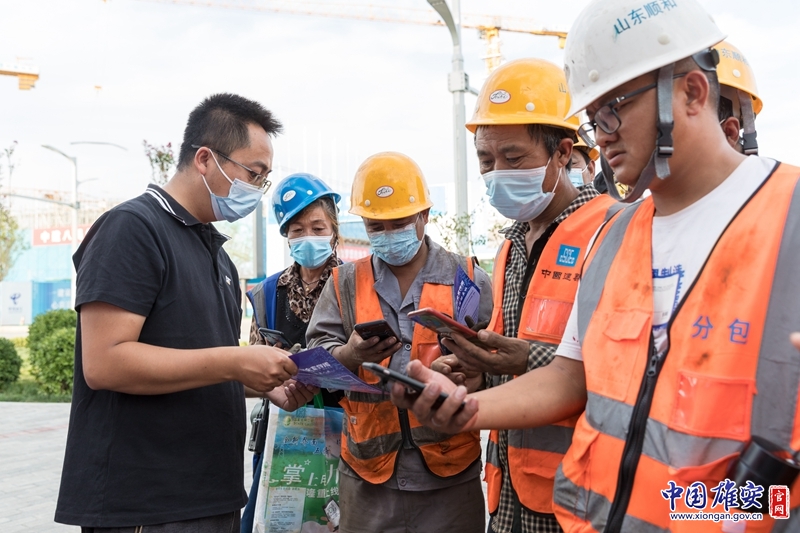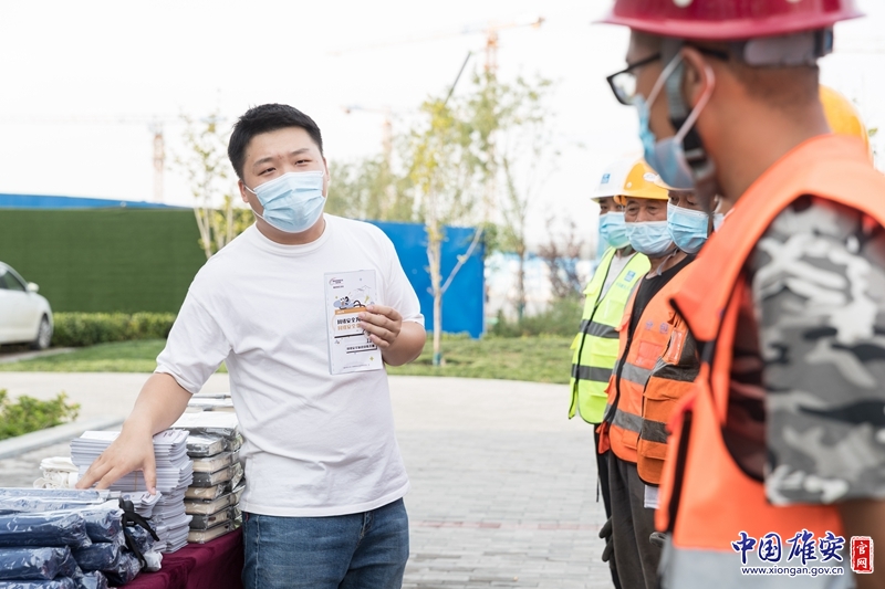 网络安全宣传活动走进雄安建设工地,工作人员向新区建设者宣传网络安全知识。中国雄安官网李鑫 摄