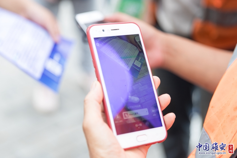 建筑工地建设者通过扫码进行网络安全知识答题,增强自身网络安全知识的学习。中国雄安官网李鑫 摄