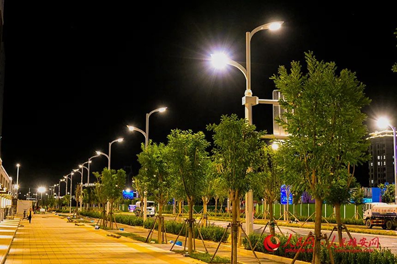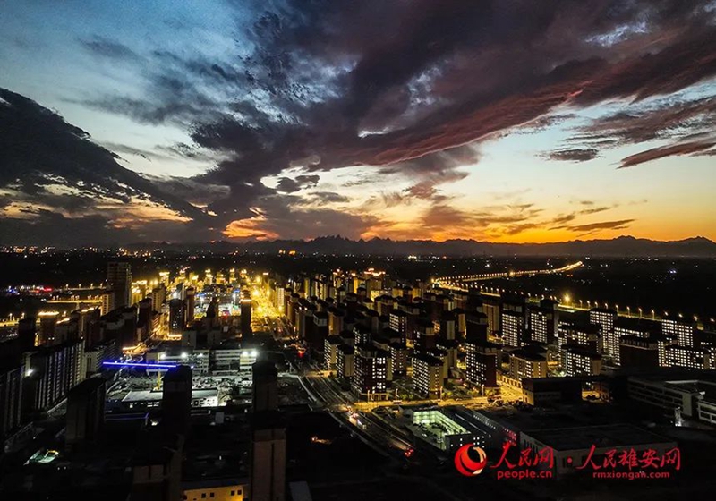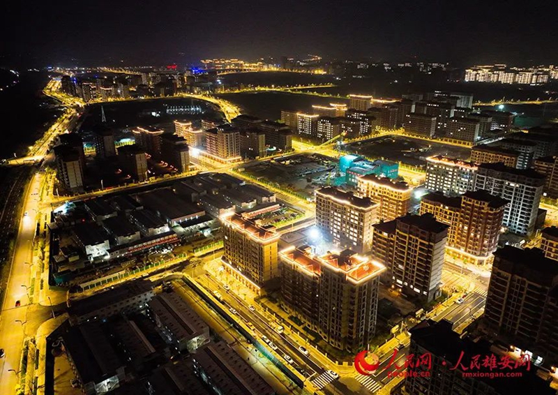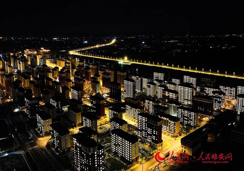 航拍夜幕下的雄安容西片区。胡忠 摄