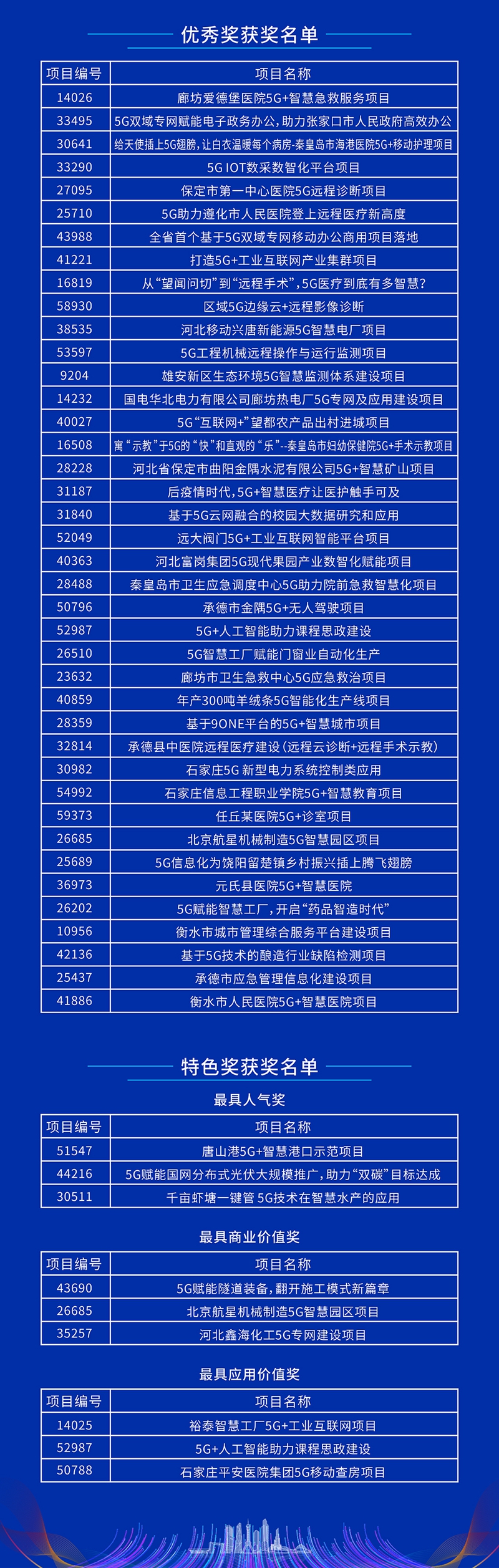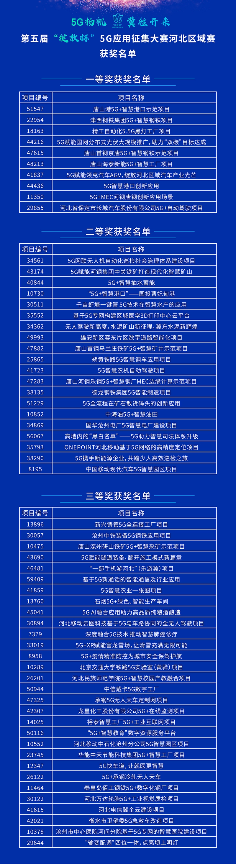 第五届“绽放杯”5G应用征集大赛河北区域赛决赛于9月14日圆满落下帷幕。区域赛以“5G扬帆·冀往开来”为主题,旨在发掘一批高技术水准、可落地的解决方案和具有示范引领作用的优秀案例,加速5G技术成果转化,构建优质5G生态,以应用带动产业发展,为经济稳定增长提供新动能。河北区域赛启动以来,经初赛、复赛、决赛,最终评选出一等奖10名、二等奖20名、三等奖30名、优秀奖40名、最具人气奖3名、最具商业价值奖3名、最具应用价值奖3名。(吕宁)