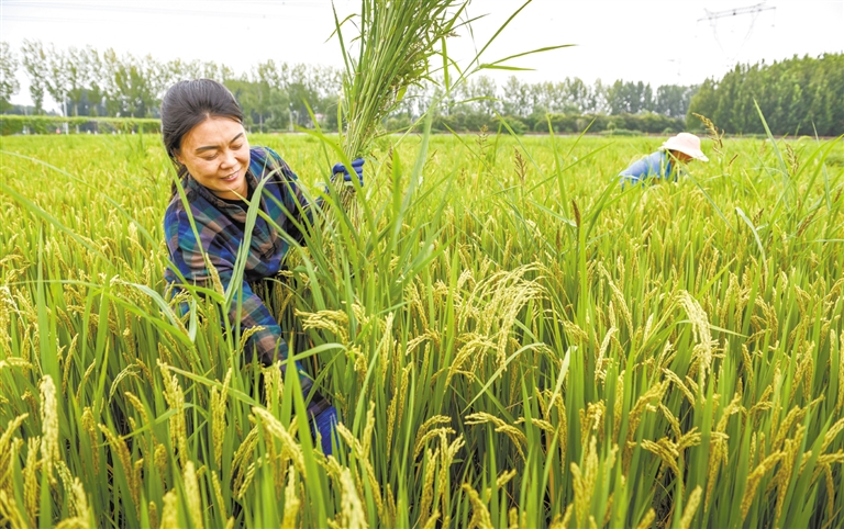 又是一年丰收时。近日,在涿州市百尺竿镇赵庄村家庭农场,83亩水稻长势喜人,沉甸甸的稻穗颗颗饱满,秋风吹过,整齐的稻田里泛起层层稻浪。今年,百尺竿镇种植水稻约8500亩,全部采用优良品种,其中258亩采用绿色生态种养殖。