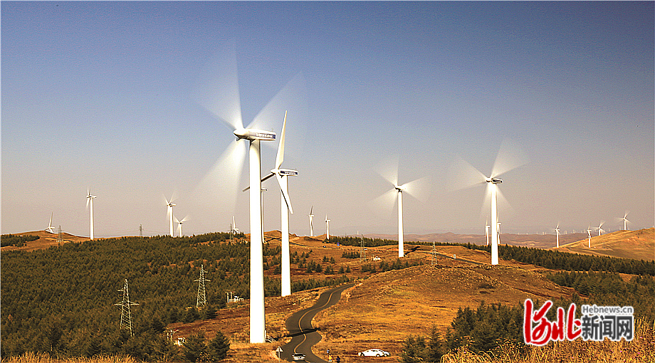 图为张北县草原天路沿线快速转动的风机。河北日报通讯员袁玉勤 摄