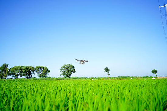 乐亭县马头营镇无人机正在作业。侯亚婷 摄