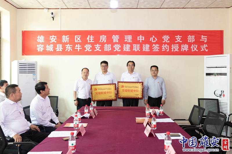 中国雄安官网9月29日电(崔利杰)9月28日,雄安新区住房管理中心党支部与容城县容城镇东牛党支部举行党建联建签约授牌仪式。雄安新区住房管理中心与东牛村党支部现场签订《党建联建意向书》,雄安新区党群工作部、容城县委组织部相关负责人为联建双方授牌。