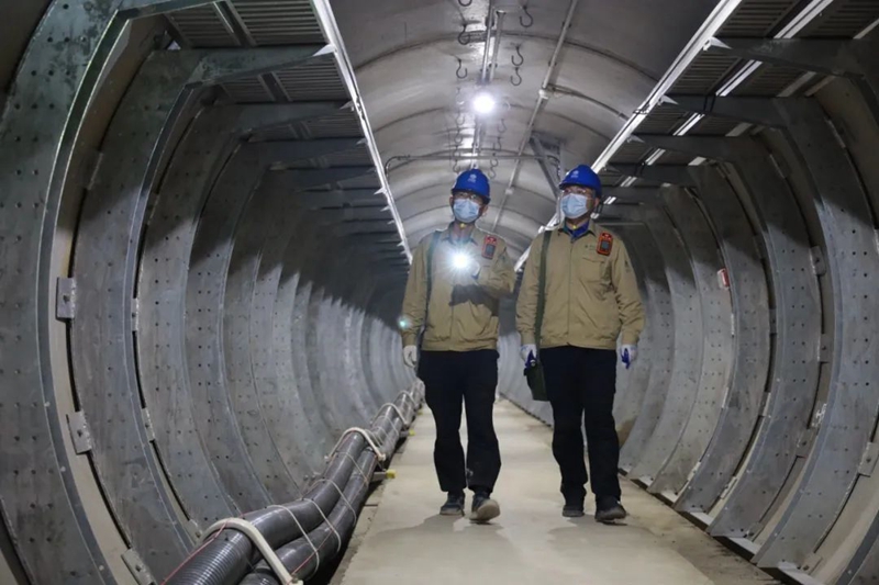 国网雄安新区供电公司电缆运检人员在电缆隧道内开展线路巡视。通讯员王玮琳 摄