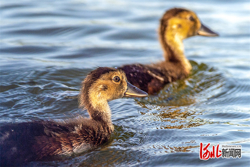 两只青头潜鸭在水中游弋。白洋淀淀区划定9个鸟类重要栖息地,野生鸟类现在达到237种,比新区设立前增加了31种,其中国家一级重点保护野生动物10种。