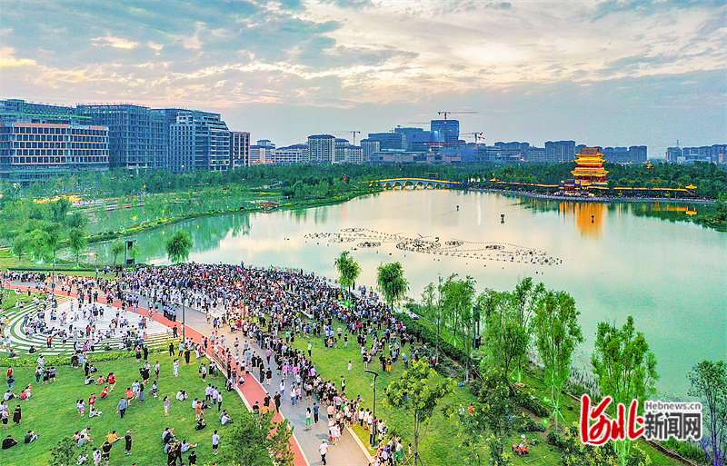 傍晚的金湖公园。雄安郊野公园、金湖公园、悦容公园等建成投用,初步形成了“城在林中、人在景中,碧波荡漾、鸟飞鱼跃”的动态画面。