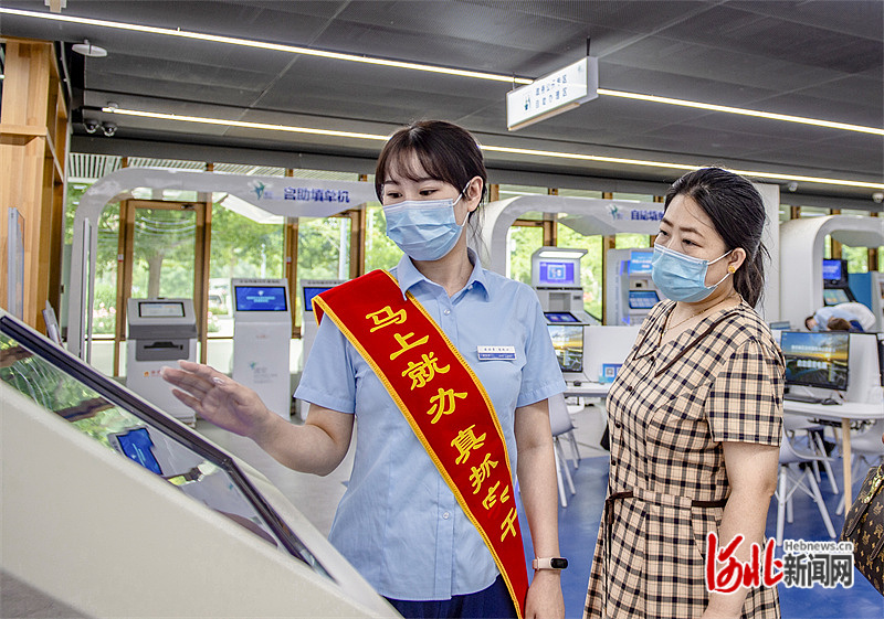 7月27日,在雄安新区政务服务中心大厅,工作人员在为市民提供引导服务。