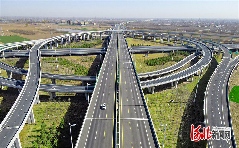京雄高速公路与荣乌高速新线互通枢纽。目前,雄安新区总长545公里的对外高速公路骨干路网已经全面形成。