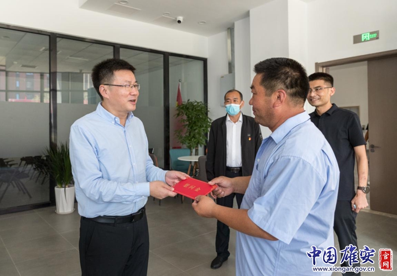 边建国看望慰问姚凯旋、罗爽。中国雄安官网李鑫 摄