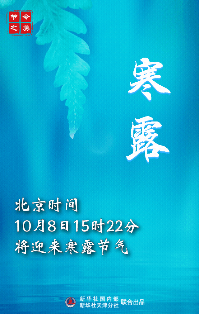 新华社天津10月7日电(记者周润健)“萧疏桐叶上,月白露初团。”北京时间10月8日15时22分将迎来寒露节气,意味着深秋到来。此时节,寒露如玉,夜凉似水,我国大部分地区气温下降速度逐渐加快,昼夜温差增大。