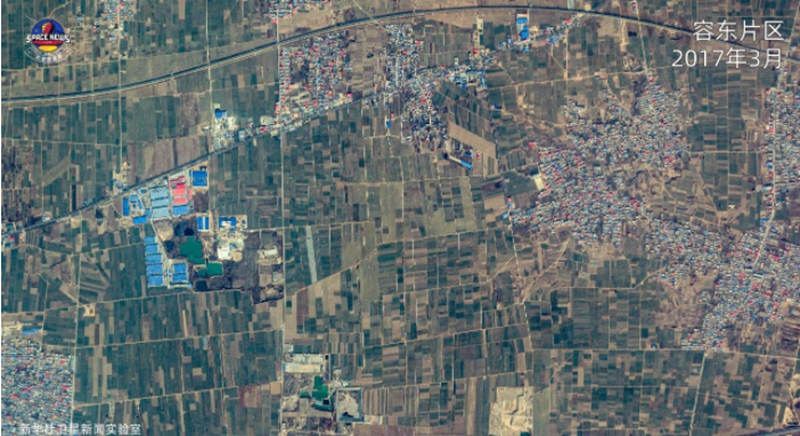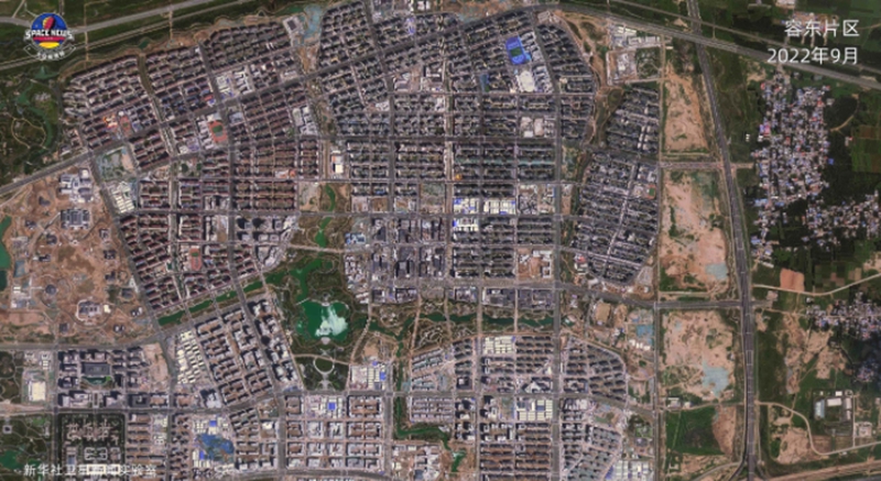 ↑前图为2022年9月的雄安新区容东片区卫星图;后图为2017年3月的雄安新区容东片区卫星图。