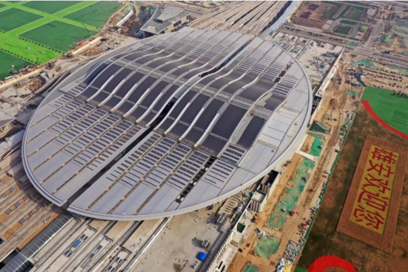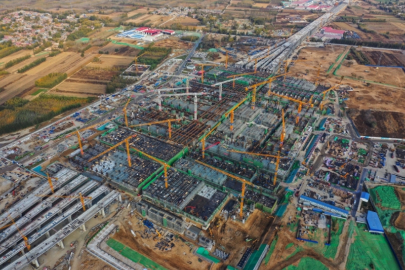 ↑前图为建成的雄安站(无人机照片,2021年4月1日摄);后图为建设中的雄安站(无人机照片,2019年11月7日摄)。