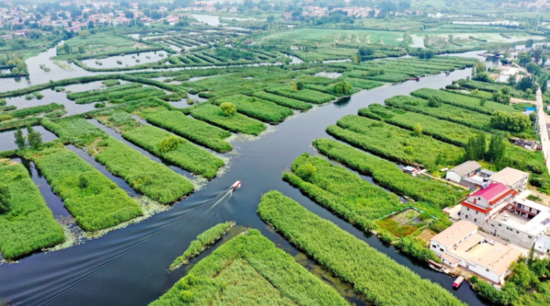 ↑2022年7月27日拍摄的雄安新区白洋淀淀区景色(无人机照片)。