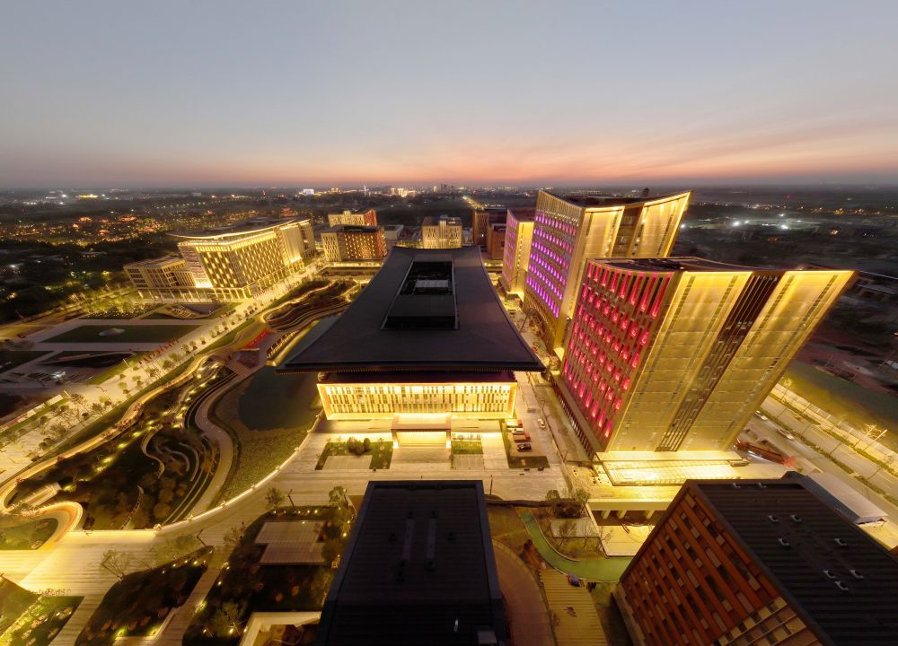 ↑2022年9月7日拍摄的雄安新区商务服务中心(无人机照片)。