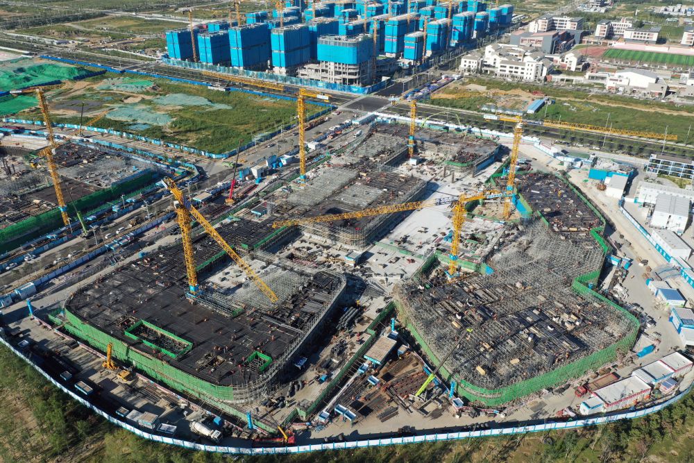 ↑2022年9月7日拍摄的位于雄安新区启动区的中国星网雄安新区总部大楼建设施工现场(无人机照片)。