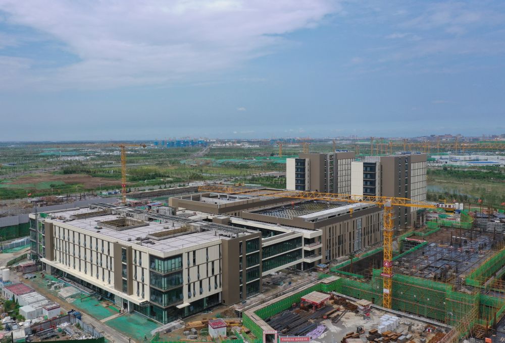 ↑2022年7月29日拍摄的位于雄安新区启动区的雄安新区宣武医院项目建设现场(无人机照片)。