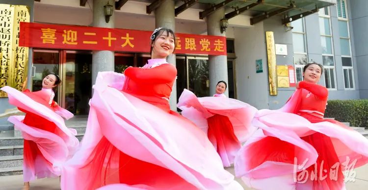 10月14日,在南宫市大屯乡赵明桥村文化活动中心,青年教师跳起欢快的舞蹈,喜迎党的二十大。河北日报记者赵永辉 摄