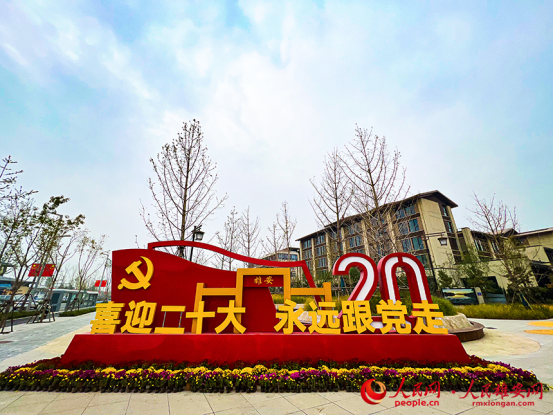 图为雄安新区容东片区“喜迎二十大”立体花坛。人民网杨华龙 摄